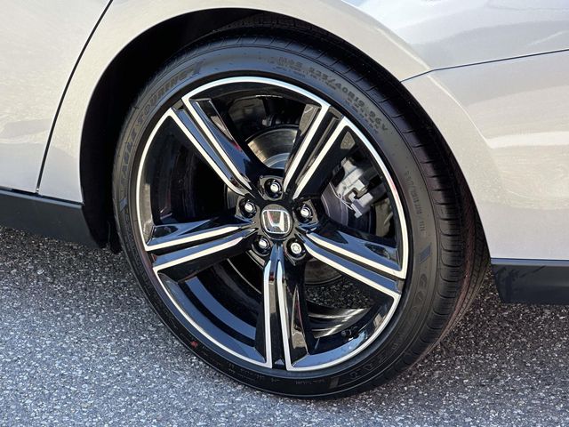 2026 Honda Accord Hybrid Sport Silver Metallic 2.0L I4 DOHC 16V, 4-Wheel Disc Brakes, 8 Speakers, ABS brakes, Adaptive Cruise Control: Adaptive Cruise Control (ACC) with Low-Speed Follow, Air Conditioning, Alloy wheels, AM/FM radio, Apple CarPlay/Android Auto, Auto High-beam Headlights, Automatic temperature control, Blind Spot Information (BSI) System warning, Brake assist, Bumpers: body-color, Compass, Delay-off headlights, Driver door bin, Driver vanity mirror, Dual front impact airbags, Dual front side impact airbags, Electronic Stability Control, Emergency communication system: HondaLink, Exterior Parking Camera Rear, Fabric Seat Trim, Four wheel independent suspension, Front anti-roll bar, Front Bucket Seats, Front Center Armrest, Front dual zone A/C, Front reading lights, Fully automatic headlights, Heated Front Bucket Seats, Heated front seats, Illuminated entry, Knee airbag, Lane departure: Lane Keeping Assist System (LKAS) active, Leather Shift Knob, Leather steering wheel, Low tire pressure warning, Occupant sensing airbag, Outside temperature display, Overhead airbag, Overhead console, Panic alarm, Passenger door bin, Passenger vanity mirror, Power door mirrors, Power driver seat, Power moonroof, Power steering, Power windows, Radio data system, Radio: 180-Watt Audio System, Rear anti-roll bar, Rear reading lights, Rear seat center armrest, Rear side impact airbag, Rear window defroster, Remote keyless entry, Security system, Speed control, Speed-sensing steering, Speed-Sensitive Wipers, Split folding rear seat, Spoiler, Steering wheel mounted audio controls, Telescoping steering wheel, Tilt steering wheel, Traction control, Trip computer, Variably intermittent wipers, and Wheels: 19" x 8.5J Berlina Black.