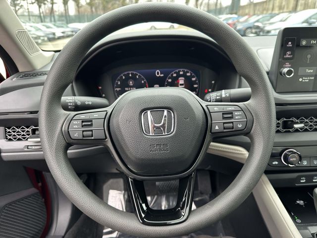 2026 Honda Accord SE Radiant Red Gry Fabric Cloth, 4-Wheel Disc Brakes, 8 Speakers, ABS brakes, Adaptive Cruise Control: Adaptive Cruise Control (ACC) with Low-Speed Follow, Air Conditioning, Alloy wheels, AM/FM radio, Apple CarPlay/Android Auto, Auto High-beam Headlights, Automatic temperature control, Blind Spot Information (BSI) System warning, Brake assist, Bumpers: body-color, Compass, Delay-off headlights, Driver door bin, Driver vanity mirror, Dual front impact airbags, Dual front side impact airbags, Electronic Stability Control, Emergency communication system: HondaLink, Exterior Parking Camera Rear, Fabric Seat Trim, Four wheel independent suspension, Front anti-roll bar, Front Bucket Seats, Front Center Armrest, Front dual zone A/C, Front reading lights, Fully automatic headlights, Heated door mirrors, Heated Front Bucket Seats, Heated front seats, Illuminated entry, Knee airbag, Lane departure: Lane Keeping Assist System (LKAS) active, Low tire pressure warning, Occupant sensing airbag, Outside temperature display, Overhead airbag, Overhead console, Panic alarm, Passenger door bin, Passenger vanity mirror, Power door mirrors, Power driver seat, Power moonroof, Power steering, Power windows, Radio data system, Radio: 180-Watt Audio System, Rear anti-roll bar, Rear reading lights, Rear seat center armrest, Rear side impact airbag, Rear window defroster, Remote keyless entry, Security system, Speed control, Speed-sensing steering, Speed-Sensitive Wipers, Split folding rear seat, Steering wheel mounted audio controls, Tachometer, Telescoping steering wheel, Tilt steering wheel, Traction control, Trip computer, Variably intermittent wipers, and Wheels: 19" x 8.5J Berlina Black.
