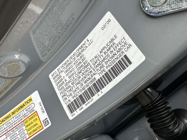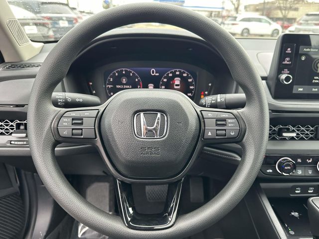 2026 Honda Accord SE Gray Blk Fabric Cloth, 4-Wheel Disc Brakes, 8 Speakers, ABS brakes, Adaptive Cruise Control: Adaptive Cruise Control (ACC) with Low-Speed Follow, Air Conditioning, Alloy wheels, AM/FM radio, Apple CarPlay/Android Auto, Auto High-beam Headlights, Automatic temperature control, Blind Spot Information (BSI) System warning, Brake assist, Bumpers: body-color, Compass, Delay-off headlights, Driver door bin, Driver vanity mirror, Dual front impact airbags, Dual front side impact airbags, Electronic Stability Control, Emergency communication system: HondaLink, Exterior Parking Camera Rear, Fabric Seat Trim, Four wheel independent suspension, Front anti-roll bar, Front Bucket Seats, Front Center Armrest, Front dual zone A/C, Front reading lights, Fully automatic headlights, Heated door mirrors, Heated Front Bucket Seats, Heated front seats, Illuminated entry, Knee airbag, Lane departure: Lane Keeping Assist System (LKAS) active, Low tire pressure warning, Occupant sensing airbag, Outside temperature display, Overhead airbag, Overhead console, Panic alarm, Passenger door bin, Passenger vanity mirror, Power door mirrors, Power driver seat, Power moonroof, Power steering, Power windows, Radio data system, Radio: 180-Watt Audio System, Rear anti-roll bar, Rear reading lights, Rear seat center armrest, Rear side impact airbag, Rear window defroster, Remote keyless entry, Security system, Speed control, Speed-sensing steering, Speed-Sensitive Wipers, Split folding rear seat, Steering wheel mounted audio controls, Tachometer, Telescoping steering wheel, Tilt steering wheel, Traction control, Trip computer, Variably intermittent wipers, and Wheels: 19" x 8.5J Berlina Black.