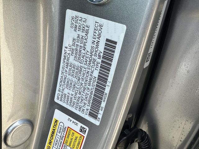 2026 Honda CR-V Hybrid Sport-L Silver Metallic 2.0L I4 DOHC 16V, 4-Wheel Disc Brakes, 8 Speakers, ABS brakes, Adaptive Cruise Control: Adaptive Cruise Control (ACC) with Low-Speed Follow, Air Conditioning, Alloy wheels, AM/FM radio, Apple CarPlay/Android Auto, Auto High-beam Headlights, Auto-dimming Rear-View mirror, Automatic temperature control, Blind Spot Information (BSI) System warning, Brake assist, Bumpers: body-color, Compass, Delay-off headlights, Driver door bin, Driver vanity mirror, Dual front impact airbags, Dual front side impact airbags, Electronic Stability Control, Exterior Parking Camera Rear, Four wheel independent suspension, Front anti-roll bar, Front Bucket Seats, Front Center Armrest, Front dual zone A/C, Front reading lights, Fully automatic headlights, Heated door mirrors, Heated Front Bucket Seats, Heated front seats, Illuminated entry, Knee airbag, Leather Seat Trim, Leather Shift Knob, Leather steering wheel, Low tire pressure warning, Memory seat, Occupant sensing airbag, Outside temperature display, Overhead airbag, Overhead console, Panic alarm, Passenger door bin, Passenger vanity mirror, Power door mirrors, Power driver seat, Power Liftgate, Power moonroof, Power passenger seat, Power steering, Power windows, Radio data system, Radio: 320-Watt AM/FM Audio System, Rear anti-roll bar, Rear reading lights, Rear seat center armrest, Rear side impact airbag, Rear window defroster, Rear window wiper, Remote keyless entry, Security system, Speed control, Speed-sensing steering, Speed-Sensitive Wipers, Split folding rear seat, Spoiler, Steering wheel mounted audio controls, Telescoping steering wheel, Tilt steering wheel, Traction control, Trip computer, Turn signal indicator mirrors, Variably intermittent wipers, and Wheels: 18" Berlina Black.