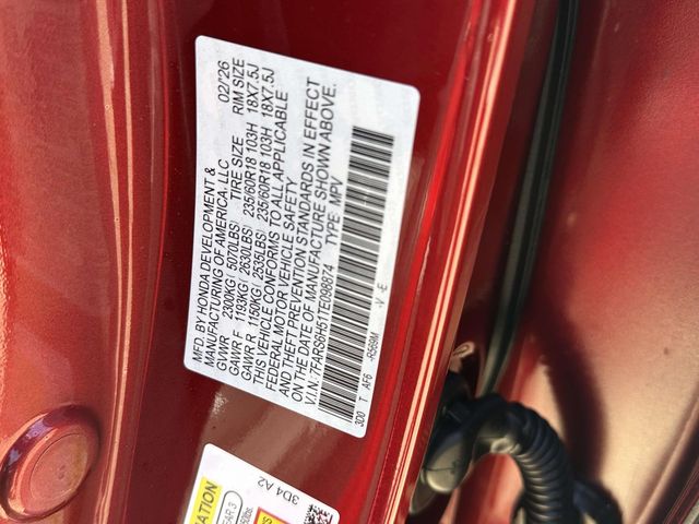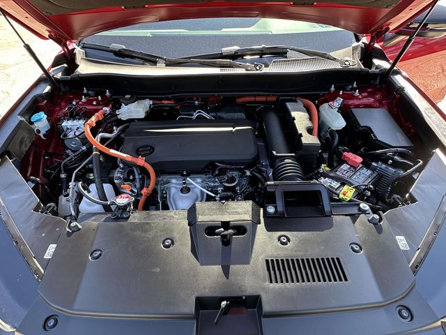 2026 Honda CR-V Hybrid Sport Radiant Red 2.0L I4 DOHC 16V, 4-Wheel Disc Brakes, 6 Speakers, ABS brakes, Adaptive Cruise Control: Adaptive Cruise Control (ACC) with Low-Speed Follow, Air Conditioning, Alloy wheels, AM/FM radio, Apple CarPlay/Android Auto, Auto High-beam Headlights, Automatic temperature control, Blind Spot Information (BSI) System warning, Brake assist, Bumpers: body-color, Cloth Seat Trim, Compass, Delay-off headlights, Driver door bin, Driver vanity mirror, Dual front impact airbags, Dual front side impact airbags, Electronic Stability Control, Exterior Parking Camera Rear, Four wheel independent suspension, Front anti-roll bar, Front Bucket Seats, Front Center Armrest, Front dual zone A/C, Front reading lights, Fully automatic headlights, Heated door mirrors, Heated Front Bucket Seats, Heated front seats, Illuminated entry, Knee airbag, Leather Shift Knob, Leather steering wheel, Low tire pressure warning, Occupant sensing airbag, Outside temperature display, Overhead airbag, Overhead console, Panic alarm, Passenger door bin, Passenger vanity mirror, Power door mirrors, Power driver seat, Power moonroof, Power steering, Power windows, Radio data system, Radio: 240-Watt AM/FM Audio System, Rear anti-roll bar, Rear reading lights, Rear seat center armrest, Rear side impact airbag, Rear window defroster, Rear window wiper, Remote keyless entry, Security system, Speed control, Speed-sensing steering, Speed-Sensitive Wipers, Split folding rear seat, Spoiler, Steering wheel mounted audio controls, Telescoping steering wheel, Tilt steering wheel, Traction control, Trip computer, Turn signal indicator mirrors, Variably intermittent wipers, and Wheels: 18" Berlina Black.
