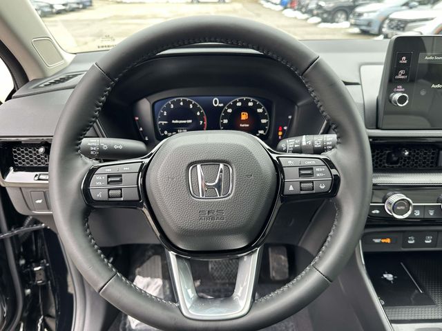 2026 Honda CR-V EX-L Black AWD, 4-Wheel Disc Brakes, 8 Speakers, ABS brakes, Adaptive Cruise Control: Adaptive Cruise Control (ACC) with Low-Speed Follow, Air Conditioning, Alloy wheels, AM/FM radio, Apple CarPlay/Android Auto, Auto High-beam Headlights, Auto-dimming Rear-View mirror, Automatic temperature control, Blind Spot Information (BSI) System warning, Brake assist, Bumpers: body-color, Compass, Delay-off headlights, Driver door bin, Driver vanity mirror, Dual front impact airbags, Dual front side impact airbags, Electronic Stability Control, Exterior Parking Camera Rear, Four wheel independent suspension, Front anti-roll bar, Front Bucket Seats, Front Center Armrest, Front dual zone A/C, Front reading lights, Fully automatic headlights, Heated door mirrors, Heated Front Bucket Seats, Heated front seats, Illuminated entry, Knee airbag, Leather Seat Trim, Leather Shift Knob, Leather steering wheel, Low tire pressure warning, Memory seat, Occupant sensing airbag, Outside temperature display, Overhead airbag, Overhead console, Panic alarm, Passenger door bin, Passenger vanity mirror, Power door mirrors, Power driver seat, Power Liftgate, Power moonroof, Power passenger seat, Power steering, Power windows, Radio data system, Radio: 320-Watt AM/FM Audio System, Rear anti-roll bar, Rear reading lights, Rear seat center armrest, Rear side impact airbag, Rear window defroster, Rear window wiper, Remote keyless entry, Security system, Speed control, Speed-sensing steering, Speed-Sensitive Wipers, Split folding rear seat, Spoiler, Steering wheel mounted audio controls, Tachometer, Telescoping steering wheel, Tilt steering wheel, Traction control, Trip computer, Turn signal indicator mirrors, Variably intermittent wipers, and Wheels: 18" Shark Grey.