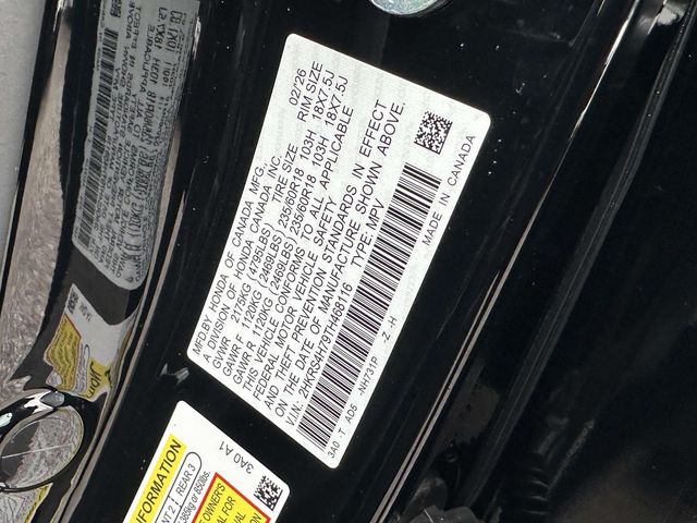 2026 Honda CR-V EX-L Crystal Black Pearl AWD, 4-Wheel Disc Brakes, 8 Speakers, ABS brakes, Adaptive Cruise Control: Adaptive Cruise Control (ACC) with Low-Speed Follow, Air Conditioning, Alloy wheels, AM/FM radio, Apple CarPlay/Android Auto, Auto High-beam Headlights, Auto-dimming Rear-View mirror, Automatic temperature control, Blind Spot Information (BSI) System warning, Brake assist, Bumpers: body-color, Compass, Delay-off headlights, Driver door bin, Driver vanity mirror, Dual front impact airbags, Dual front side impact airbags, Electronic Stability Control, Exterior Parking Camera Rear, Four wheel independent suspension, Front anti-roll bar, Front Bucket Seats, Front Center Armrest, Front dual zone A/C, Front reading lights, Fully automatic headlights, Heated door mirrors, Heated Front Bucket Seats, Heated front seats, Illuminated entry, Knee airbag, Leather Seat Trim, Leather Shift Knob, Leather steering wheel, Low tire pressure warning, Memory seat, Occupant sensing airbag, Outside temperature display, Overhead airbag, Overhead console, Panic alarm, Passenger door bin, Passenger vanity mirror, Power door mirrors, Power driver seat, Power Liftgate, Power moonroof, Power passenger seat, Power steering, Power windows, Radio data system, Radio: 320-Watt AM/FM Audio System, Rear anti-roll bar, Rear reading lights, Rear seat center armrest, Rear side impact airbag, Rear window defroster, Rear window wiper, Remote keyless entry, Security system, Speed control, Speed-sensing steering, Speed-Sensitive Wipers, Split folding rear seat, Spoiler, Steering wheel mounted audio controls, Tachometer, Telescoping steering wheel, Tilt steering wheel, Traction control, Trip computer, Turn signal indicator mirrors, Variably intermittent wipers, and Wheels: 18" Shark Grey.