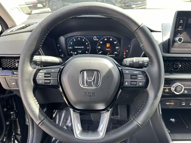 2026 Honda CR-V EX-L Black AWD, 4-Wheel Disc Brakes, 8 Speakers, ABS brakes, Adaptive Cruise Control: Adaptive Cruise Control (ACC) with Low-Speed Follow, Air Conditioning, Alloy wheels, AM/FM radio, Apple CarPlay/Android Auto, Auto High-beam Headlights, Auto-dimming Rear-View mirror, Automatic temperature control, Blind Spot Information (BSI) System warning, Brake assist, Bumpers: body-color, Compass, Delay-off headlights, Driver door bin, Driver vanity mirror, Dual front impact airbags, Dual front side impact airbags, Electronic Stability Control, Exterior Parking Camera Rear, Four wheel independent suspension, Front anti-roll bar, Front Bucket Seats, Front Center Armrest, Front dual zone A/C, Front reading lights, Fully automatic headlights, Heated door mirrors, Heated Front Bucket Seats, Heated front seats, Illuminated entry, Knee airbag, Leather Seat Trim, Leather Shift Knob, Leather steering wheel, Low tire pressure warning, Memory seat, Occupant sensing airbag, Outside temperature display, Overhead airbag, Overhead console, Panic alarm, Passenger door bin, Passenger vanity mirror, Power door mirrors, Power driver seat, Power Liftgate, Power moonroof, Power passenger seat, Power steering, Power windows, Radio data system, Radio: 320-Watt AM/FM Audio System, Rear anti-roll bar, Rear reading lights, Rear seat center armrest, Rear side impact airbag, Rear window defroster, Rear window wiper, Remote keyless entry, Security system, Speed control, Speed-sensing steering, Speed-Sensitive Wipers, Split folding rear seat, Spoiler, Steering wheel mounted audio controls, Tachometer, Telescoping steering wheel, Tilt steering wheel, Traction control, Trip computer, Turn signal indicator mirrors, Variably intermittent wipers, and Wheels: 18" Shark Grey.