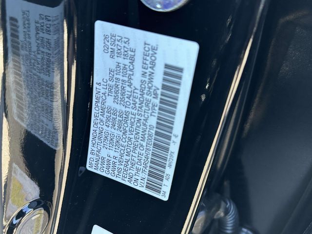 2026 Honda CR-V EX-L Black AWD, 4-Wheel Disc Brakes, 8 Speakers, ABS brakes, Adaptive Cruise Control: Adaptive Cruise Control (ACC) with Low-Speed Follow, Air Conditioning, Alloy wheels, AM/FM radio, Apple CarPlay/Android Auto, Auto High-beam Headlights, Auto-dimming Rear-View mirror, Automatic temperature control, Blind Spot Information (BSI) System warning, Brake assist, Bumpers: body-color, Compass, Delay-off headlights, Driver door bin, Driver vanity mirror, Dual front impact airbags, Dual front side impact airbags, Electronic Stability Control, Exterior Parking Camera Rear, Four wheel independent suspension, Front anti-roll bar, Front Bucket Seats, Front Center Armrest, Front dual zone A/C, Front reading lights, Fully automatic headlights, Heated door mirrors, Heated Front Bucket Seats, Heated front seats, Illuminated entry, Knee airbag, Leather Seat Trim, Leather Shift Knob, Leather steering wheel, Low tire pressure warning, Memory seat, Occupant sensing airbag, Outside temperature display, Overhead airbag, Overhead console, Panic alarm, Passenger door bin, Passenger vanity mirror, Power door mirrors, Power driver seat, Power Liftgate, Power moonroof, Power passenger seat, Power steering, Power windows, Radio data system, Radio: 320-Watt AM/FM Audio System, Rear anti-roll bar, Rear reading lights, Rear seat center armrest, Rear side impact airbag, Rear window defroster, Rear window wiper, Remote keyless entry, Security system, Speed control, Speed-sensing steering, Speed-Sensitive Wipers, Split folding rear seat, Spoiler, Steering wheel mounted audio controls, Tachometer, Telescoping steering wheel, Tilt steering wheel, Traction control, Trip computer, Turn signal indicator mirrors, Variably intermittent wipers, and Wheels: 18" Shark Grey.