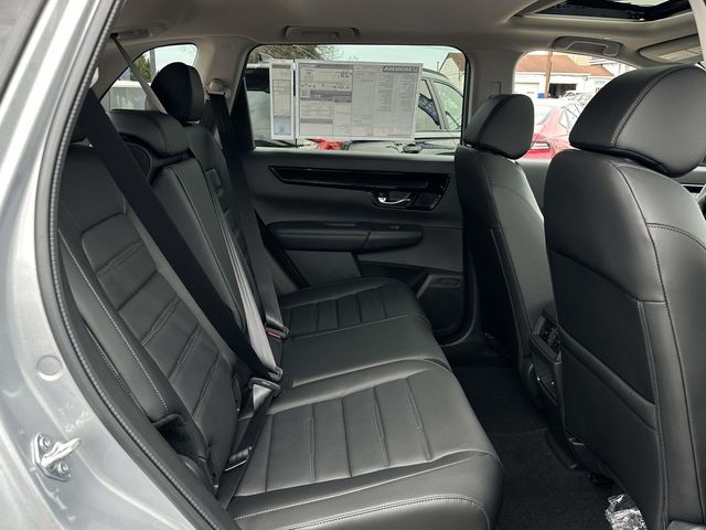 2026 Honda CR-V EX-L Silver Metallic AWD, 4-Wheel Disc Brakes, 8 Speakers, ABS brakes, Adaptive Cruise Control: Adaptive Cruise Control (ACC) with Low-Speed Follow, Air Conditioning, Alloy wheels, AM/FM radio, Apple CarPlay/Android Auto, Auto High-beam Headlights, Auto-dimming Rear-View mirror, Automatic temperature control, Blind Spot Information (BSI) System warning, Brake assist, Bumpers: body-color, Compass, Delay-off headlights, Driver door bin, Driver vanity mirror, Dual front impact airbags, Dual front side impact airbags, Electronic Stability Control, Exterior Parking Camera Rear, Four wheel independent suspension, Front anti-roll bar, Front Bucket Seats, Front Center Armrest, Front dual zone A/C, Front reading lights, Fully automatic headlights, Heated door mirrors, Heated Front Bucket Seats, Heated front seats, Illuminated entry, Knee airbag, Leather Seat Trim, Leather Shift Knob, Leather steering wheel, Low tire pressure warning, Memory seat, Occupant sensing airbag, Outside temperature display, Overhead airbag, Overhead console, Panic alarm, Passenger door bin, Passenger vanity mirror, Power door mirrors, Power driver seat, Power Liftgate, Power moonroof, Power passenger seat, Power steering, Power windows, Radio data system, Radio: 320-Watt AM/FM Audio System, Rear anti-roll bar, Rear reading lights, Rear seat center armrest, Rear side impact airbag, Rear window defroster, Rear window wiper, Remote keyless entry, Security system, Speed control, Speed-sensing steering, Speed-Sensitive Wipers, Split folding rear seat, Spoiler, Steering wheel mounted audio controls, Tachometer, Telescoping steering wheel, Tilt steering wheel, Traction control, Trip computer, Turn signal indicator mirrors, Variably intermittent wipers, and Wheels: 18" Shark Grey.