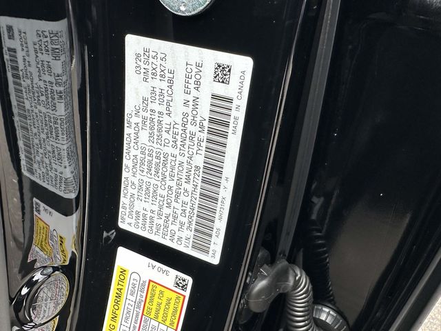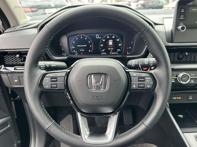2026 Honda CR-V EX-L Black AWD, 4-Wheel Disc Brakes, 8 Speakers, ABS brakes, Adaptive Cruise Control: Adaptive Cruise Control (ACC) with Low-Speed Follow, Air Conditioning, Alloy wheels, AM/FM radio, Apple CarPlay/Android Auto, Auto High-beam Headlights, Auto-dimming Rear-View mirror, Automatic temperature control, Blind Spot Information (BSI) System warning, Brake assist, Bumpers: body-color, Compass, Delay-off headlights, Driver door bin, Driver vanity mirror, Dual front impact airbags, Dual front side impact airbags, Electronic Stability Control, Exterior Parking Camera Rear, Four wheel independent suspension, Front anti-roll bar, Front Bucket Seats, Front Center Armrest, Front dual zone A/C, Front reading lights, Fully automatic headlights, Heated door mirrors, Heated Front Bucket Seats, Heated front seats, Illuminated entry, Knee airbag, Leather Seat Trim, Leather Shift Knob, Leather steering wheel, Low tire pressure warning, Memory seat, Occupant sensing airbag, Outside temperature display, Overhead airbag, Overhead console, Panic alarm, Passenger door bin, Passenger vanity mirror, Power door mirrors, Power driver seat, Power Liftgate, Power moonroof, Power passenger seat, Power steering, Power windows, Radio data system, Radio: 320-Watt AM/FM Audio System, Rear anti-roll bar, Rear reading lights, Rear seat center armrest, Rear side impact airbag, Rear window defroster, Rear window wiper, Remote keyless entry, Security system, Speed control, Speed-sensing steering, Speed-Sensitive Wipers, Split folding rear seat, Spoiler, Steering wheel mounted audio controls, Tachometer, Telescoping steering wheel, Tilt steering wheel, Traction control, Trip computer, Turn signal indicator mirrors, Variably intermittent wipers, and Wheels: 18" Shark Grey.