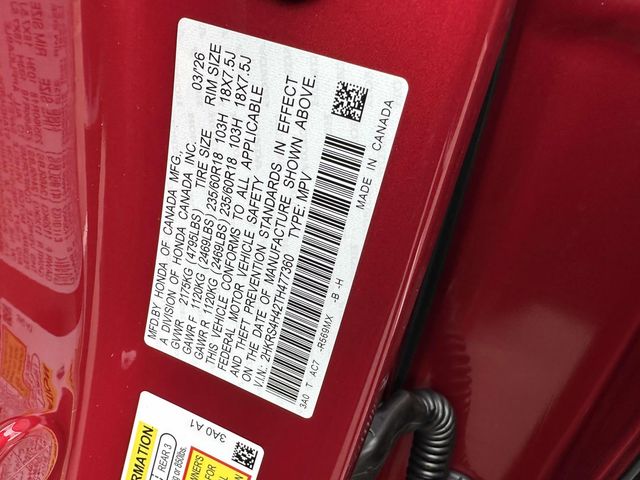 2026 Honda CR-V EX Radiant Red AWD, 4-Wheel Disc Brakes, 6 Speakers, ABS brakes, Adaptive Cruise Control: Adaptive Cruise Control (ACC) with Low-Speed Follow, Air Conditioning, Alloy wheels, AM/FM radio, Apple CarPlay/Android Auto, Auto High-beam Headlights, Automatic temperature control, Blind Spot Information (BSI) System warning, Brake assist, Bumpers: body-color, Cloth Seat Trim, Compass, Delay-off headlights, Driver door bin, Driver vanity mirror, Dual front impact airbags, Dual front side impact airbags, Electronic Stability Control, Exterior Parking Camera Rear, Four wheel independent suspension, Front anti-roll bar, Front Bucket Seats, Front Center Armrest, Front dual zone A/C, Front reading lights, Fully automatic headlights, Heated door mirrors, Heated Front Bucket Seats, Heated front seats, Illuminated entry, Knee airbag, Low tire pressure warning, Occupant sensing airbag, Outside temperature display, Overhead airbag, Overhead console, Panic alarm, Passenger door bin, Passenger vanity mirror, Power door mirrors, Power driver seat, Power moonroof, Power steering, Power windows, Radio data system, Radio: 240-Watt AM/FM Audio System, Rear anti-roll bar, Rear reading lights, Rear seat center armrest, Rear side impact airbag, Rear window defroster, Rear window wiper, Remote keyless entry, Security system, Speed control, Speed-sensing steering, Speed-Sensitive Wipers, Split folding rear seat, Spoiler, Steering wheel mounted audio controls, Tachometer, Telescoping steering wheel, Tilt steering wheel, Traction control, Trip computer, Turn signal indicator mirrors, Variably intermittent wipers, and Wheels: 18" Sparkle Silver.