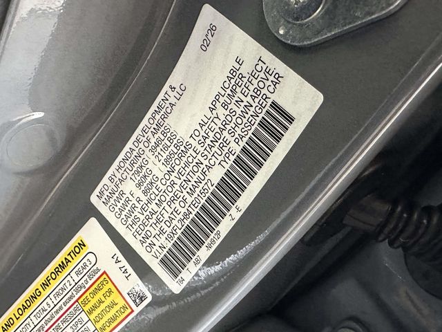 - VIN : 19XFL2H84TE015572