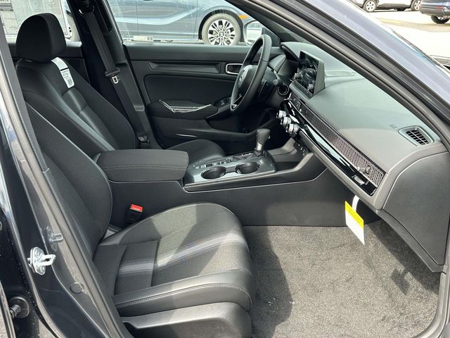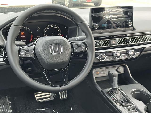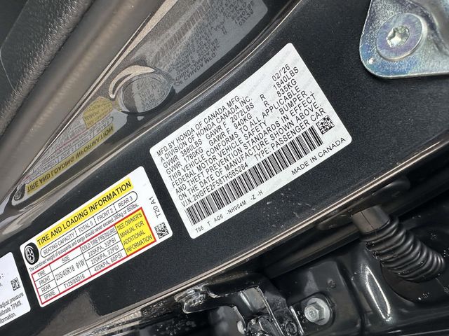 2026 Honda Civic Sport Meteorite Blk Clth/Lthette Artificial Leather, 4-Wheel Disc Brakes, 8 Speakers, ABS brakes, Adaptive Cruise Control: Adaptive Cruise Control (ACC) with Low-Speed Follow, Air Conditioning, Alloy wheels, AM/FM radio, Apple CarPlay/Android Auto, Auto High-beam Headlights, Automatic temperature control, Blind Spot Information (BSI) System warning, Brake assist, Bumpers: body-color, Cloth/Leatherette Seating Surfaces, Delay-off headlights, Driver door bin, Driver vanity mirror, Dual front impact airbags, Dual front side impact airbags, Electronic Stability Control, Emergency communication system: HondaLink, Exterior Parking Camera Rear, Four wheel independent suspension, Front anti-roll bar, Front Bucket Seats, Front Center Armrest, Front reading lights, Fully automatic headlights, Heated door mirrors, Illuminated entry, Knee airbag, Leather Shift Knob, Leather steering wheel, Low tire pressure warning, Occupant sensing airbag, Outside temperature display, Overhead airbag, Panic alarm, Passenger door bin, Passenger vanity mirror, Power door mirrors, Power steering, Power windows, Radio data system, Radio: 180-Watt Audio System, Rear anti-roll bar, Rear seat center armrest, Rear side impact airbag, Rear window defroster, Remote keyless entry, Security system, Speed control, Speed-sensing steering, Split folding rear seat, Steering wheel mounted audio controls, Tachometer, Telescoping steering wheel, Tilt steering wheel, Traction control, Trip computer, and Wheels: 18" Gloss Black Alloy.