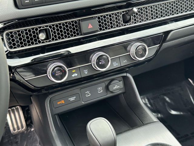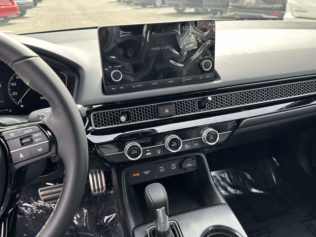 2026 Honda Civic Sport Gray Blk Clth/Lthette Artificial Leather, 4-Wheel Disc Brakes, 8 Speakers, ABS brakes, Adaptive Cruise Control: Adaptive Cruise Control (ACC) with Low-Speed Follow, Air Conditioning, Alloy wheels, AM/FM radio, Apple CarPlay/Android Auto, Auto High-beam Headlights, Automatic temperature control, Blind Spot Information (BSI) System warning, Brake assist, Bumpers: body-color, Cloth/Leatherette Seating Surfaces, Delay-off headlights, Driver door bin, Driver vanity mirror, Dual front impact airbags, Dual front side impact airbags, Electronic Stability Control, Emergency communication system: HondaLink, Exterior Parking Camera Rear, Four wheel independent suspension, Front anti-roll bar, Front Bucket Seats, Front Center Armrest, Front reading lights, Fully automatic headlights, Heated door mirrors, HondaLink, Illuminated entry, Knee airbag, Lane departure: Lane Keeping Assist System (LKAS) active, Leather Shift Knob, Low tire pressure warning, Occupant sensing airbag, Outside temperature display, Overhead airbag, Panic alarm, Passenger door bin, Passenger vanity mirror, Power door mirrors, Power steering, Power windows, Radio data system, Radio: 180-Watt Audio System, Rear anti-roll bar, Rear side impact airbag, Rear window defroster, Rear window wiper, Remote keyless entry, Security system, Speed control, Speed-sensing steering, Split folding rear seat, Steering wheel mounted audio controls, Tachometer, Telescoping steering wheel, Tilt steering wheel, Traction control, Trip computer, and Wheels: 18" Gloss Black Alloy.