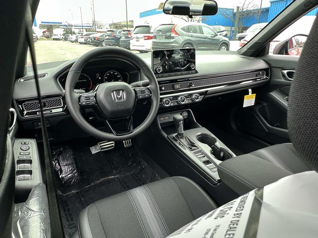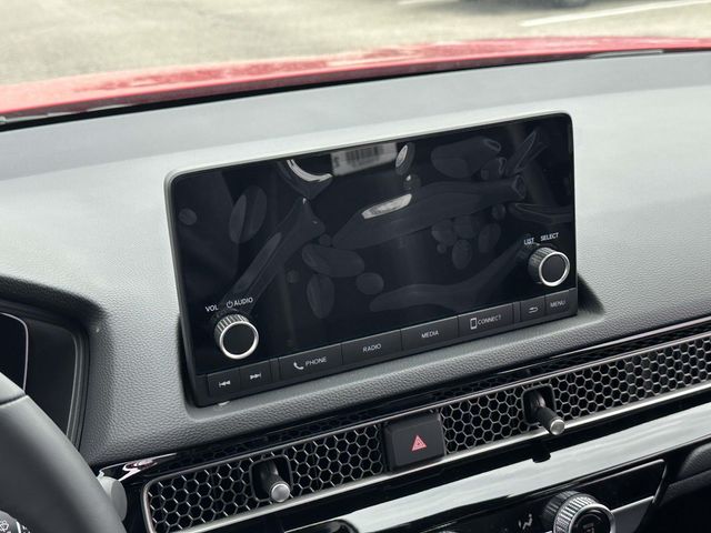 2026 Honda Civic Sport Rallye Red Blk Clth/Lthette Artificial Leather, 4-Wheel Disc Brakes, 8 Speakers, ABS brakes, Adaptive Cruise Control: Adaptive Cruise Control (ACC) with Low-Speed Follow, Air Conditioning, Alloy wheels, AM/FM radio, Apple CarPlay/Android Auto, Auto High-beam Headlights, Automatic temperature control, Blind Spot Information (BSI) System warning, Brake assist, Bumpers: body-color, Cloth/Leatherette Seating Surfaces, Delay-off headlights, Driver door bin, Driver vanity mirror, Dual front impact airbags, Dual front side impact airbags, Electronic Stability Control, Emergency communication system: HondaLink, Exterior Parking Camera Rear, Four wheel independent suspension, Front anti-roll bar, Front Bucket Seats, Front Center Armrest, Front reading lights, Fully automatic headlights, Heated door mirrors, Illuminated entry, Knee airbag, Leather Shift Knob, Leather steering wheel, Low tire pressure warning, Occupant sensing airbag, Outside temperature display, Overhead airbag, Panic alarm, Passenger door bin, Passenger vanity mirror, Power door mirrors, Power steering, Power windows, Radio data system, Radio: 180-Watt Audio System, Rear anti-roll bar, Rear seat center armrest, Rear side impact airbag, Rear window defroster, Remote keyless entry, Security system, Speed control, Speed-sensing steering, Split folding rear seat, Steering wheel mounted audio controls, Tachometer, Telescoping steering wheel, Tilt steering wheel, Traction control, Trip computer, and Wheels: 18" Gloss Black Alloy.