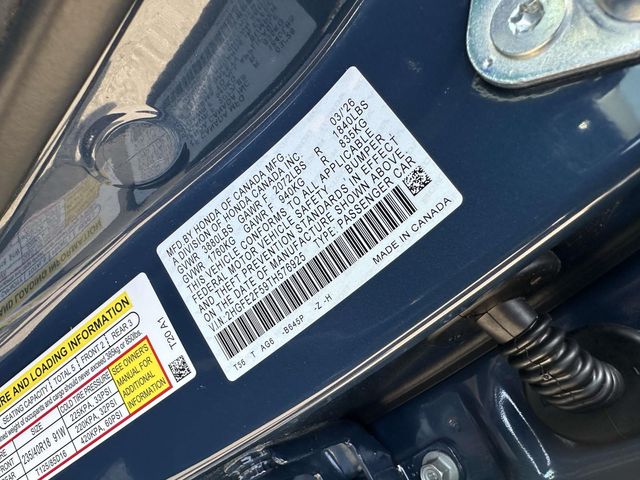 2026 Honda Civic Sport Blue Blk Clth/Lthette Artificial Leather, 4-Wheel Disc Brakes, 8 Speakers, ABS brakes, Adaptive Cruise Control: Adaptive Cruise Control (ACC) with Low-Speed Follow, Air Conditioning, Alloy wheels, AM/FM radio, Apple CarPlay/Android Auto, Auto High-beam Headlights, Automatic temperature control, Blind Spot Information (BSI) System warning, Brake assist, Bumpers: body-color, Cloth/Leatherette Seating Surfaces, Delay-off headlights, Driver door bin, Driver vanity mirror, Dual front impact airbags, Dual front side impact airbags, Electronic Stability Control, Emergency communication system: HondaLink, Exterior Parking Camera Rear, Four wheel independent suspension, Front anti-roll bar, Front Bucket Seats, Front Center Armrest, Front reading lights, Fully automatic headlights, Heated door mirrors, Illuminated entry, Knee airbag, Leather Shift Knob, Leather steering wheel, Low tire pressure warning, Occupant sensing airbag, Outside temperature display, Overhead airbag, Panic alarm, Passenger door bin, Passenger vanity mirror, Power door mirrors, Power steering, Power windows, Radio data system, Radio: 180-Watt Audio System, Rear anti-roll bar, Rear seat center armrest, Rear side impact airbag, Rear window defroster, Remote keyless entry, Security system, Speed control, Speed-sensing steering, Split folding rear seat, Steering wheel mounted audio controls, Tachometer, Telescoping steering wheel, Tilt steering wheel, Traction control, Trip computer, and Wheels: 18" Gloss Black Alloy.