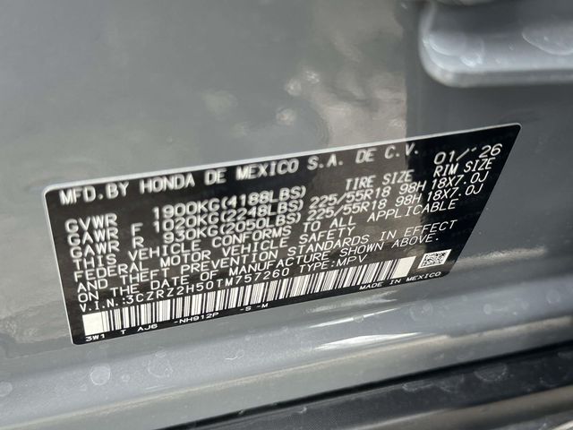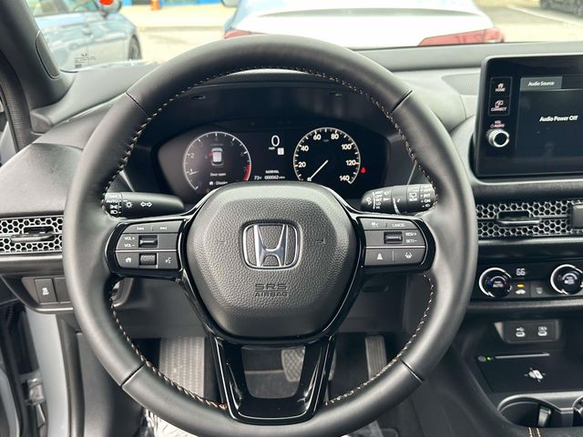 2026 Honda HR-V Sport Gray 4-Wheel Disc Brakes, 6 Speakers, ABS brakes, Adaptive Cruise Control: Adaptive Cruise Control (ACC) with Low-Speed Follow, Air Conditioning, Alloy wheels, AM/FM radio, Apple CarPlay/Android Auto, Auto High-beam Headlights, Automatic temperature control, Blind Spot Information (BSI) System warning, Brake assist, Bumpers: body-color, Cloth Seat Trim, Compass, Delay-off headlights, Driver door bin, Driver vanity mirror, Dual front impact airbags, Dual front side impact airbags, Electronic Stability Control, Exterior Parking Camera Rear, Four wheel independent suspension, Front anti-roll bar, Front Bucket Seats, Front Center Armrest, Front reading lights, Fully automatic headlights, Heated door mirrors, Heated Front Bucket Seats, Heated front seats, Illuminated entry, Knee airbag, Low tire pressure warning, Occupant sensing airbag, Outside temperature display, Overhead airbag, Panic alarm, Passenger door bin, Passenger vanity mirror, Power door mirrors, Power steering, Power windows, Radio data system, Radio: 180-Watt Audio System with 6 Speakers, Rear anti-roll bar, Rear reading lights, Rear side impact airbag, Rear window defroster, Rear window wiper, Remote keyless entry, Security system, Speed control, Speed-sensing steering, Split folding rear seat, Spoiler, Steering wheel mounted audio controls, Tachometer, Telescoping steering wheel, Tilt steering wheel, Traction control, Trip computer, Turn signal indicator mirrors, Variably intermittent wipers, and Wheels: 18" Gloss Black Alloy.