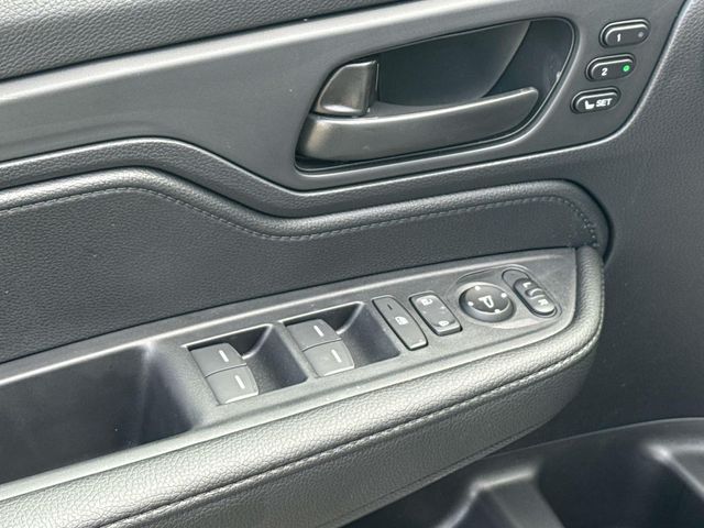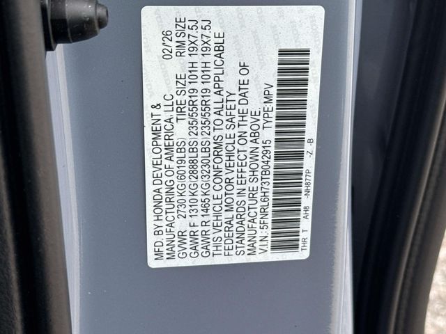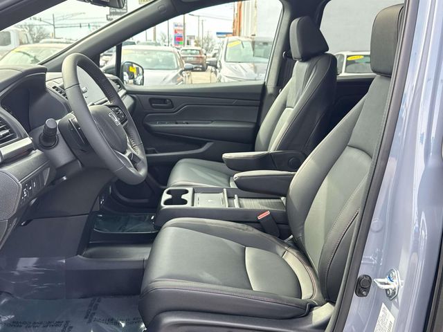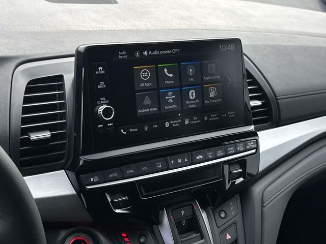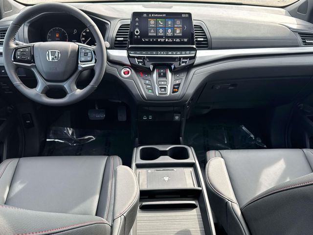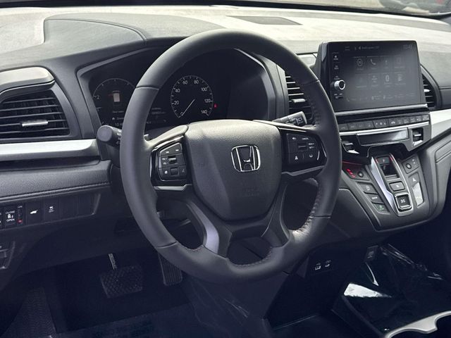 2026 Honda Odyssey Sport-L Gray 3rd row seats: split-bench, 4-Wheel Disc Brakes, 7 Speakers, ABS brakes, Adaptive Cruise Control: Adaptive Cruise Control (ACC) with Low-Speed Follow, Air Conditioning, Alloy wheels, AM/FM radio: SiriusXM, Anti-whiplash front head restraints, Apple CarPlay/Android Auto, Auto High-beam Headlights, Auto-dimming Rear-View mirror, Automatic temperature control, Blind Spot Information (BSI) System warning, Brake assist, Bumpers: body-color, Delay-off headlights, Driver door bin, Driver vanity mirror, Driver's Seat Mounted Armrest, Dual front impact airbags, Dual front side impact airbags, Electronic Stability Control, Exterior Parking Camera Rear, Four wheel independent suspension, Front anti-roll bar, Front Bucket Seats, Front dual zone A/C, Front fog lights, Front reading lights, Fully automatic headlights, Garage door transmitter: HomeLink, Heated door mirrors, Heated Front Bucket Seats, Heated front seats, Illuminated entry, Knee airbag, Lane departure: Lane Keeping Assist System (LKAS) active, Leather steering wheel, Leather-Trimmed Seats, Low tire pressure warning, Memory seat, Occupant sensing airbag, Outside temperature display, Overhead airbag, Overhead console, Panic alarm, Passenger door bin, Passenger seat mounted armrest, Passenger vanity mirror, Power door mirrors, Power driver seat, Power Liftgate, Power moonroof, Power passenger seat, Power steering, Power windows, Radio data system, Radio: 160-Watt AM/FM/HD/SiriusXM Audio System, Rear air conditioning, Rear anti-roll bar, Rear reading lights, Rear seat center armrest, Rear window defroster, Rear window wiper, Reclining 3rd row seat, Remote keyless entry, Security system, Speed control, Speed-sensing steering, Speed-Sensitive Wipers, Split folding rear seat, Spoiler, Steering wheel mounted audio controls, Tachometer, Telescoping steering wheel, Tilt steering wheel, Traction control, Trip computer, Turn signal indicator mirrors, Variably intermittent wipers, and Wheels: 19" Gloss Black Alloy.