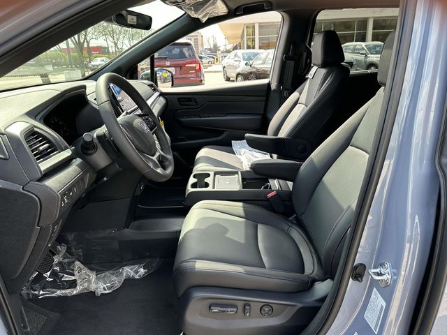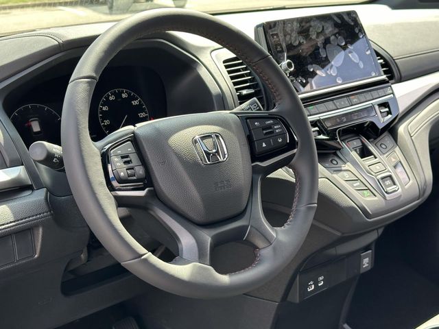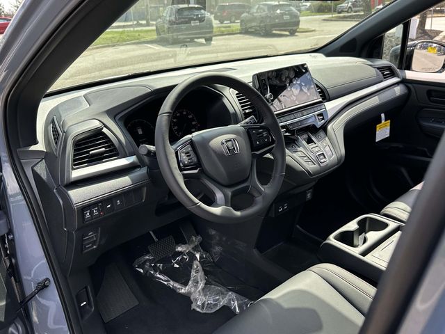 2026 Honda Odyssey Sport-L Gray 3rd row seats: split-bench, 4-Wheel Disc Brakes, 7 Speakers, ABS brakes, Adaptive Cruise Control: Adaptive Cruise Control (ACC) with Low-Speed Follow, Air Conditioning, Alloy wheels, AM/FM radio: SiriusXM, Anti-whiplash front head restraints, Apple CarPlay/Android Auto, Auto High-beam Headlights, Auto-dimming Rear-View mirror, Automatic temperature control, Blind Spot Information (BSI) System warning, Brake assist, Bumpers: body-color, Delay-off headlights, Driver door bin, Driver vanity mirror, Driver's Seat Mounted Armrest, Dual front impact airbags, Dual front side impact airbags, Electronic Stability Control, Exterior Parking Camera Rear, Four wheel independent suspension, Front anti-roll bar, Front Bucket Seats, Front dual zone A/C, Front fog lights, Front reading lights, Fully automatic headlights, Garage door transmitter: HomeLink, Heated door mirrors, Heated Front Bucket Seats, Heated front seats, Illuminated entry, Knee airbag, Lane departure: Lane Keeping Assist System (LKAS) active, Leather steering wheel, Leather-Trimmed Seats, Low tire pressure warning, Memory seat, Occupant sensing airbag, Outside temperature display, Overhead airbag, Overhead console, Panic alarm, Passenger door bin, Passenger seat mounted armrest, Passenger vanity mirror, Power door mirrors, Power driver seat, Power Liftgate, Power moonroof, Power passenger seat, Power steering, Power windows, Radio data system, Radio: 160-Watt AM/FM/HD/SiriusXM Audio System, Rear air conditioning, Rear anti-roll bar, Rear reading lights, Rear seat center armrest, Rear window defroster, Rear window wiper, Reclining 3rd row seat, Remote keyless entry, Security system, Speed control, Speed-sensing steering, Speed-Sensitive Wipers, Split folding rear seat, Spoiler, Steering wheel mounted audio controls, Tachometer, Telescoping steering wheel, Tilt steering wheel, Traction control, Trip computer, Turn signal indicator mirrors, Variably intermittent wipers, and Wheels: 19" Gloss Black Alloy.