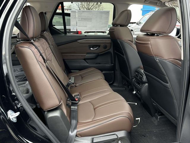 2026 Honda Pilot Elite Black AWD, 12 Speakers, 3rd row seats: split-bench, 4-Wheel Disc Brakes, ABS brakes, Adaptive Cruise Control: Adaptive Cruise Control (ACC) with Low-Speed Follow, Air Conditioning, Alloy wheels, Apple CarPlay/Android Auto, Auto High-beam Headlights, Auto-dimming door mirrors, Auto-dimming Rear-View mirror, Automatic temperature control, Blind Spot Information (BSI) System warning, Bose Premium Sound System, Brake assist, Bumpers: body-color, Compass, Delay-off headlights, Driver door bin, Driver vanity mirror, Dual front impact airbags, Dual front side impact airbags, Electronic Stability Control, Emergency communication system: HondaLink, Exterior Parking Camera Rear, Four wheel independent suspension, Front anti-roll bar, Front Bucket Seats, Front Center Armrest, Front dual zone A/C, Front fog lights, Front reading lights, Fully automatic headlights, Garage door transmitter: HomeLink, Heads-Up Display, Heated and Ventilated Front Bucket Seats, Heated door mirrors, Heated front seats, Heated rear seats, Heated steering wheel, HondaLink, HondaLink Subscription Services, Illuminated entry, Knee airbag, Lane departure: Lane Keeping Assist System (LKAS) active, Low tire pressure warning, Memory seat, Navigation system: Google Maps, Occupant sensing airbag, Outside temperature display, Overhead airbag, Overhead console, Panic alarm, Passenger door bin, Passenger vanity mirror, Perforated Leather-Trimmed Seat Trim, Power door mirrors, Power driver seat, Power Liftgate, Power moonroof, Power passenger seat, Power steering, Power windows, Radio data system, Rain sensing wipers, Rear air conditioning, Rear anti-roll bar, Rear reading lights, Rear seat center armrest, Rear window defroster, Rear window wiper, Reclining 3rd row seat, Remote keyless entry, Security system, Speed control, Speed-sensing steering, Speed-Sensitive Wipers, Split folding rear seat, Spoiler, Steering wheel mounted audio controls, Tachometer, Telescoping steering wheel, Tilt steering wheel, Traction control, Trip computer, Turn signal indicator mirrors, Variably intermittent wipers, Ventilated front seats, and Wheels: 20" Shark Gray Machined Face.