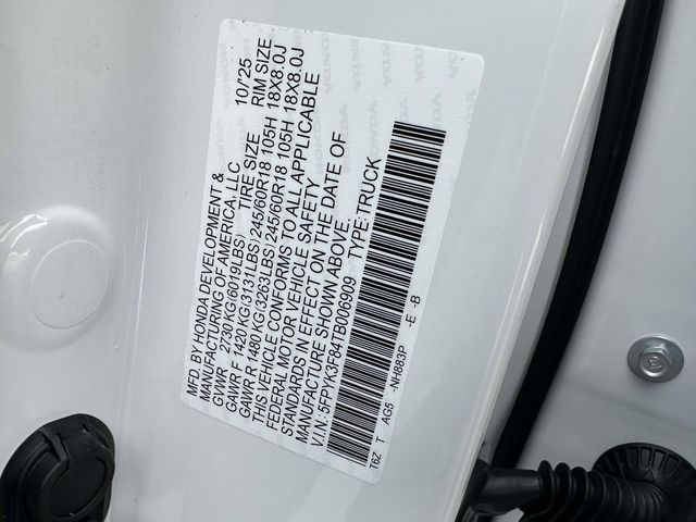 2026 Honda Ridgeline Black Edition Platinum Blk Lth Leather, 4-Wheel Disc Brakes, 4.33 Axle Ratio, 8 Speakers, ABS brakes, Air Conditioning, Alloy wheels, AM/FM radio: SiriusXM, Auto High-beam Headlights, Auto-dimming Rear-View mirror, Automatic temperature control, Blind Spot Information (BSI) System warning, Bluetooth Hands-Free Link, Brake assist, Bumpers: body-color, Compass, Delay-off headlights, Driver door bin, Driver vanity mirror, Driver's Seat Mounted Armrest, Dual front impact airbags, Dual front side impact airbags, Electronic Stability Control, Emergency communication system: HondaLink Assist, Exterior Parking Camera Rear, Four wheel independent suspension, Front anti-roll bar, Front Bucket Seats, Front dual zone A/C, Front fog lights, Front reading lights, Fully automatic headlights, Garage door transmitter: HomeLink, Heated and Ventilated Front Bucket Seats, Heated door mirrors, Heated front seats, Heated rear seats, Heated steering wheel, Honda Satellite-Linked Navigation System, Illuminated entry, Leather Seat Trim, Leather steering wheel, Low tire pressure warning, Memory seat, Navigation system: Honda Satellite-Linked Navigation System, Occupant sensing airbag, Outside temperature display, Overhead airbag, Overhead console, Panic alarm, Passenger door bin, Passenger seat mounted armrest, Passenger vanity mirror, Power door mirrors, Power driver seat, Power moonroof, Power passenger seat, Power steering, Power windows, Radio data system, Radio: 540-Watt Premium Audio System with 8 Speakers, Rear air conditioning, Rear anti-roll bar, Rear reading lights, Rear seat center armrest, Rear step bumper, Rear window defroster, Remote keyless entry, Security system, SiriusXM, Speed control, Speed-sensing steering, Split folding rear seat, Steering wheel mounted audio controls, Tachometer, Telescoping steering wheel, Tilt steering wheel, Traction control, Trip computer, Turn signal indicator mirrors, Variably intermittent wipers, Ventilated front seats, and Wheels: 18" Berlina Black Alloy. Price includes: $1500 - Sales Credit. Exp. 04/30/2026