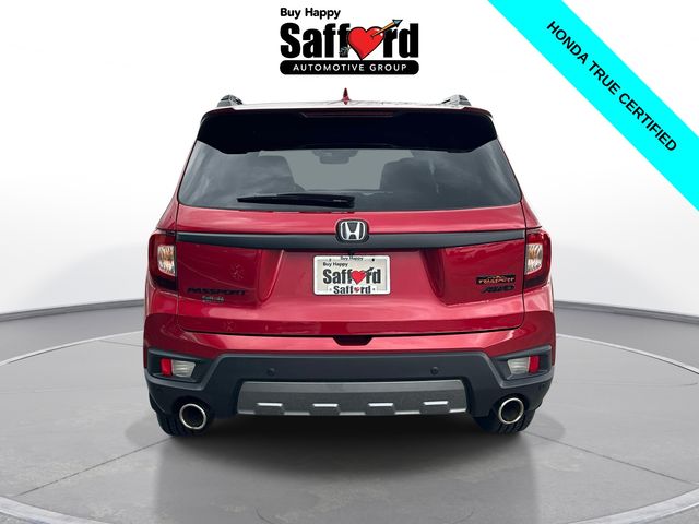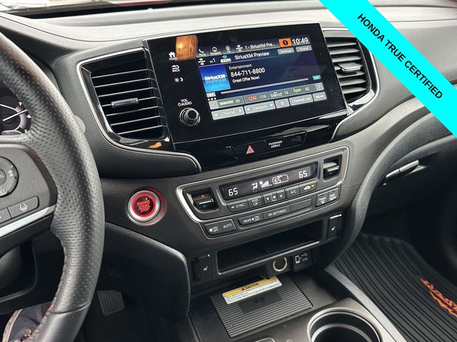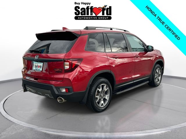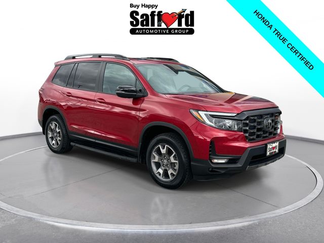 Certified. CARFAX One-Owner. Radiant Red Metallic II 2022 Honda Passport TrailSport 4D Sport Utility AWD AWD 9-Speed Automatic 3.5L V6 24V SOHC i-VTEC **HONDATRUE CERTIFIED**, **7 YEAR/100,000 MILE HONDATRUE CERTIFIED**, **APPLE CARPLAY/ANDRIOD AUTO**, **AWD**, **POWER SEAT**, **HEATED SEATS**, **LEATHER SEATS**, **HEATED LEATHER SEATS**, **MOONROOF**, **NAVIGATION**, **POWER LIFTGATE**, **BLUETOOTH**, **BACKUP CAMERA**, **BLIND SPOT INFORMATION**, **COLLISION MITIGATION SYSTEM**, Appearance Package, Heat Package, Leather Seats, Memory Package, Moonroof, Multimedia Package, Navigation System, Remote Start, Sunroof/Moonroof, Alloy wheels, Apple CarPlay/Android Auto, Blind Spot Information (BSI) System warning, Brake assist, Electronic Stability Control, Exterior Parking Camera Rear, Forward collision: Collision Mitigation Braking System (CMBS) + FCW mitigation, Heated front seats, Lane departure: Lane Keeping Assist System (LKAS) active, Leather-Trimmed Seats w/Orange Stitching, Memory seat, Navigation system: Honda Satellite-Linked Navigation System, Power Liftgate, Power moonroof, Wheels: 18" Machine-Finish Alloy.
