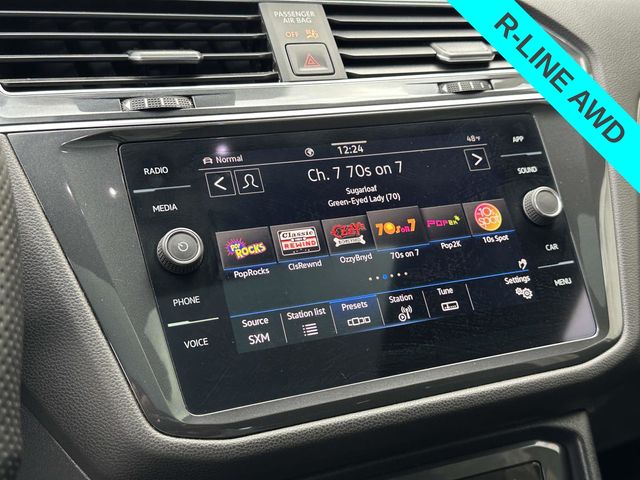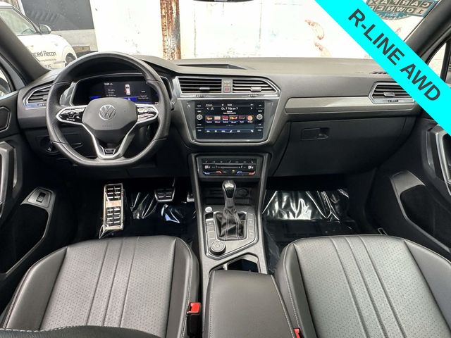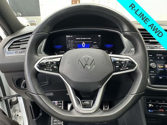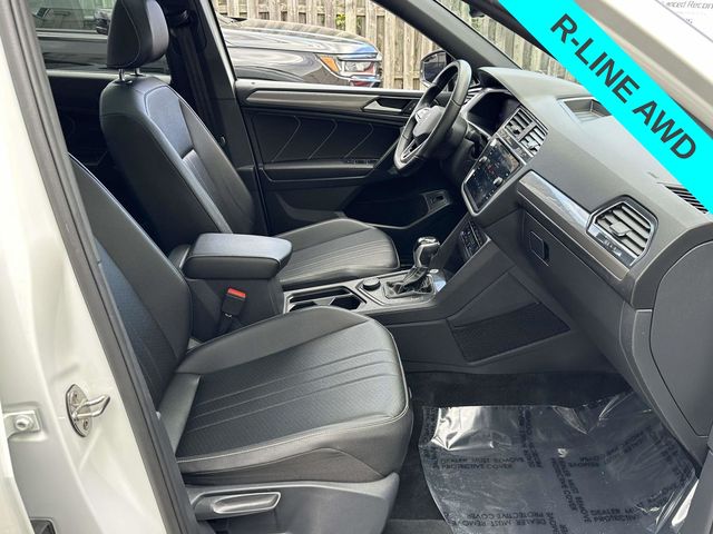 Clean CARFAX. Oryx White Pearl 2022 Volkswagen Tiguan 2.0T SE R-Line Black 4D Sport Utility AWD AWD 8-Speed Automatic with Tiptronic 2.0L TSI DOHC **APPLE CARPLAY/ANDRIOD AUTO**, **AWD**, **POWER SEAT**, **HEATED SEATS**, **LEATHER SEATS**, **HEATED LEATHER SEATS**, **MOONROOF**, **PANORAMIC MOONROOF**, **POWER LIFTGATE**, **BLUETOOTH**, **BACKUP CAMERA**, **BLIND SPOT INFORMATION**, **COLLISION MITIGATION SYSTEM**, **BALANCE OF FACTORY WARRANTY**, **CLEAN CARFAX**, Heat Package, Leather Seats, Moonroof, AWD, Alloy wheels, Brake assist, Electronic Stability Control, Exterior Parking Camera Rear, Heated front seats, Perforated V-Tex Leatherette Seating Surfaces, Power Liftgate, Power moonroof, Radio: MIB3 Composition Media AM/FM/HD, Rear window wiper, Speed control, Wheels: 19" Black Twin 5-Spoke Alloy.
