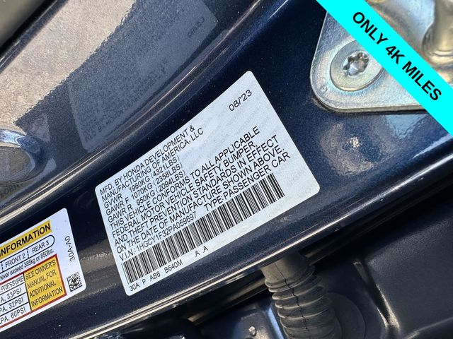 Black w/Fabric Seat Trim, Adaptive Cruise Control: Adaptive Cruise Control (ACC) with Low-Speed Follow, Alloy wheels, Apple CarPlay/Android Auto, Brake assist, Electronic Stability Control, Exterior Parking Camera Rear, Heated front seats, Lane departure: Lane Keeping Assist System (LKAS) active, Power moonroof, Wheels: 17" x 7.5" Pewter Gray, 4-Wheel Disc Brakes, 8 Speakers, ABS brakes, Air Conditioning, AM/FM radio, Auto High-beam Headlights, Auto-dimming Rear-View mirror, Automatic temperature control, Bumpers: body-color, Compass, Delay-off headlights, Driver door bin, Driver vanity mirror, Dual front impact airbags, Dual front side impact airbags, Emergency communication system: HondaLink Assist, Fabric Seat Trim, Four wheel independent suspension, Front anti-roll bar, Front Bucket Seats, Front Center Armrest, Front dual zone A/C, Front reading lights, Fully automatic headlights, Heated door mirrors, Heated Front Bucket Seats, Illuminated entry, Knee airbag, Low tire pressure warning, Occupant sensing airbag, Outside temperature display, Overhead airbag, Overhead console, Panic alarm, Passenger door bin, Passenger vanity mirror, Power door mirrors, Power driver seat, Power steering, Power windows, Radio data system, Radio: 180-Watt AM/FM Audio System, Rear anti-roll bar, Rear reading lights, Rear seat center armrest, Rear side impact airbag, Rear window defroster, Remote keyless entry, Security system, Speed control, Speed-sensing steering, Speed-Sensitive Wipers, Split folding rear seat, Steering wheel mounted audio controls, Tachometer, Telescoping steering wheel, Tilt steering wheel, Traction control, Trip computer, and Variably intermittent wipers. Recent Arrival! Odometer is 32083 miles below market average! 29/37 City/Highway MPG