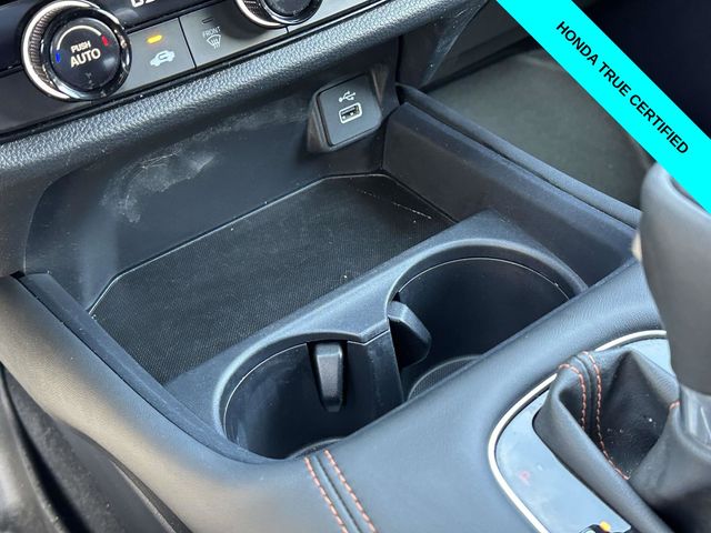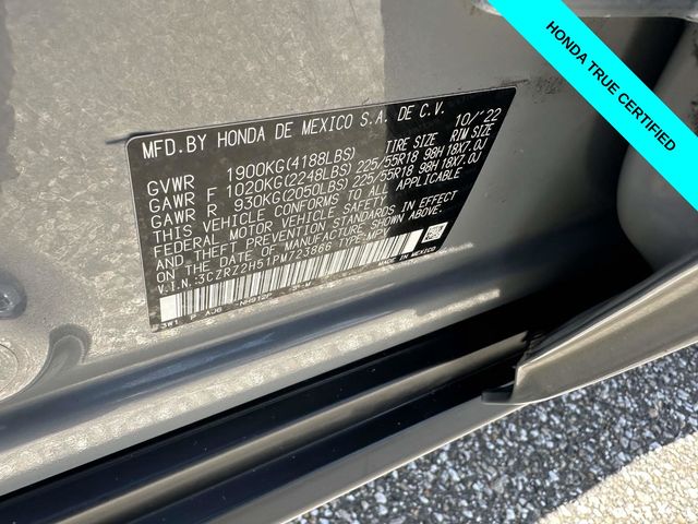 HondaTrue Certified Certified, Adaptive Cruise Control: Adaptive Cruise Control (ACC) with Low-Speed Follow, Alloy wheels, Apple CarPlay/Android Auto, Blind Spot Information (BSI) System warning, Brake assist, Electronic Stability Control, Exterior Parking Camera Rear, Heated front seats, Wheels: 18" Gloss Black Alloy, 4-Wheel Disc Brakes, 5.436 Axle Ratio, 6 Speakers, ABS brakes, Air Conditioning, AM/FM radio, Auto High-beam Headlights, Automatic temperature control, Bumpers: body-color, Cloth Seat Trim, Delay-off headlights, Driver door bin, Driver vanity mirror, Dual front impact airbags, Dual front side impact airbags, Emergency communication system: HondaLink, Four wheel independent suspension, Front anti-roll bar, Front Bucket Seats, Front Center Armrest, Front reading lights, Fully automatic headlights, Heated door mirrors, Heated Front Bucket Seats, Illuminated entry, Knee airbag, Leather Shift Knob, Low tire pressure warning, Occupant sensing airbag, Outside temperature display, Overhead airbag, Panic alarm, Passenger door bin, Passenger vanity mirror, Power door mirrors, Power steering, Power windows, Radio data system, Radio: 180-Watt Audio System w/6 Speakers, Rear anti-roll bar, Rear reading lights, Rear side impact airbag, Rear window defroster, Rear window wiper, Remote keyless entry, Security system, Speed control, Speed-sensing steering, Split folding rear seat, Spoiler, Steering wheel mounted audio controls, Tachometer, Telescoping steering wheel, Tilt steering wheel, Traction control, Trip computer, Turn signal indicator mirrors, and Variably intermittent wipers. Recent Arrival! Odometer is 4403 miles below market average! 25/30 City/Highway MPG