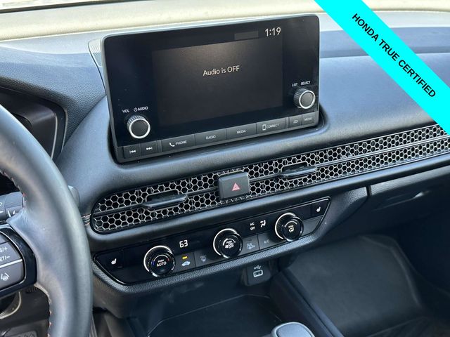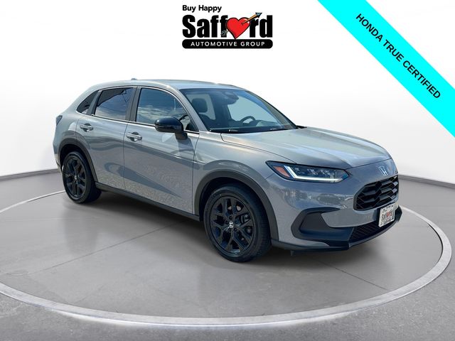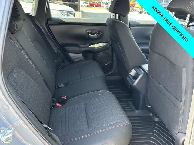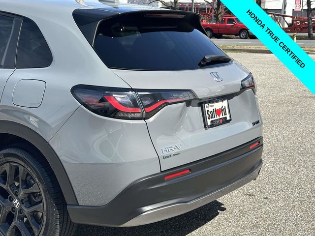 Certified. Clean CARFAX. Urban Gray Pearl 2023 Honda HR-V Sport 4D Sport Utility AWD AWD CVT 2.0L I4 DOHC 16V i-VTEC **HONDATRUE CERTIFIED**, **7 YEAR/100,000 MILE HONDATRUE CERTIFIED**, **APPLE CARPLAY/ANDRIOD AUTO**, **AWD**, **HEATED SEATS**, **BLUETOOTH**, **BACKUP CAMERA**, **BLIND SPOT INFORMATION**, **COLLISION MITIGATION SYSTEM**, **BALANCE OF FACTORY WARRANTY**, **CLEAN CARFAX**, Appearance Package, Heat Package, Sport Package, Adaptive Cruise Control: Adaptive Cruise Control (ACC) with Low-Speed Follow, Alloy wheels, Apple CarPlay/Android Auto, Blind Spot Information (BSI) System warning, Brake assist, Electronic Stability Control, Exterior Parking Camera Rear, Heated front seats, Wheels: 18" Gloss Black Alloy.