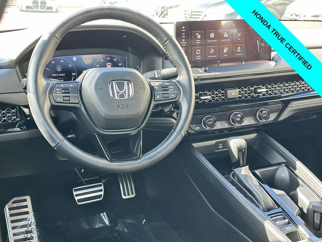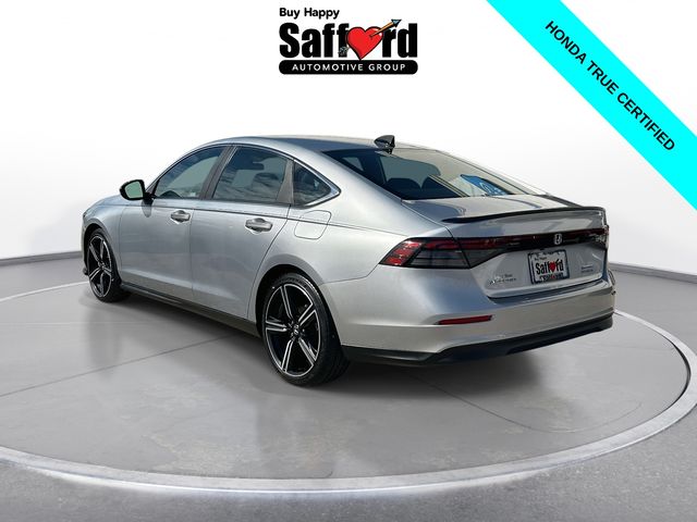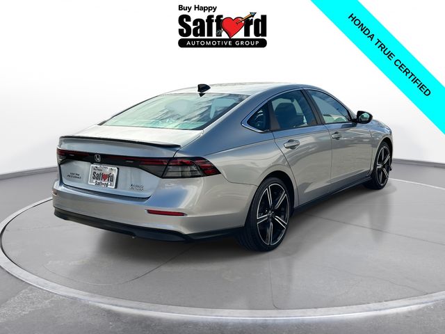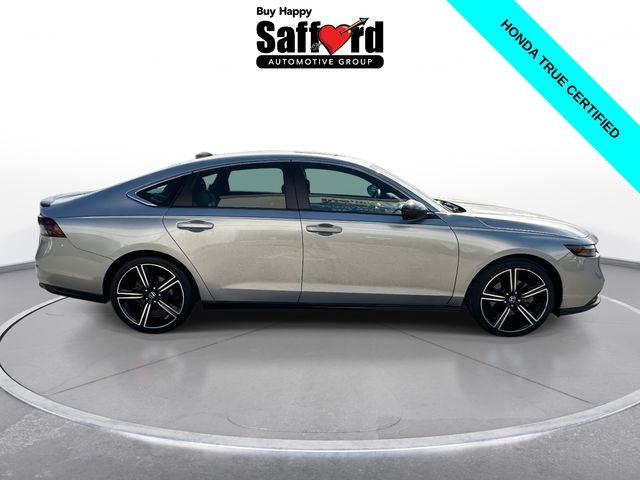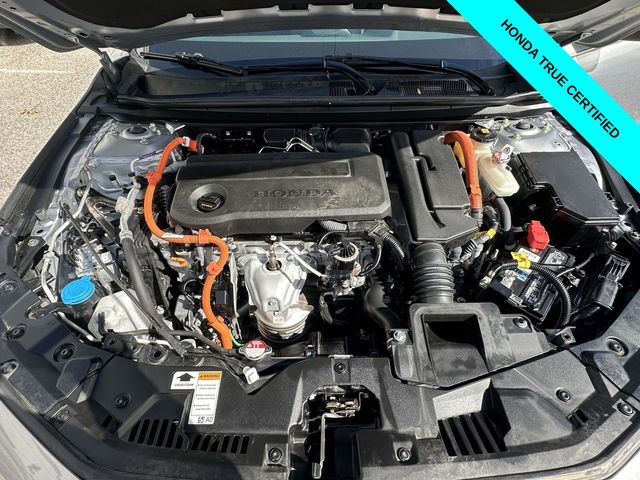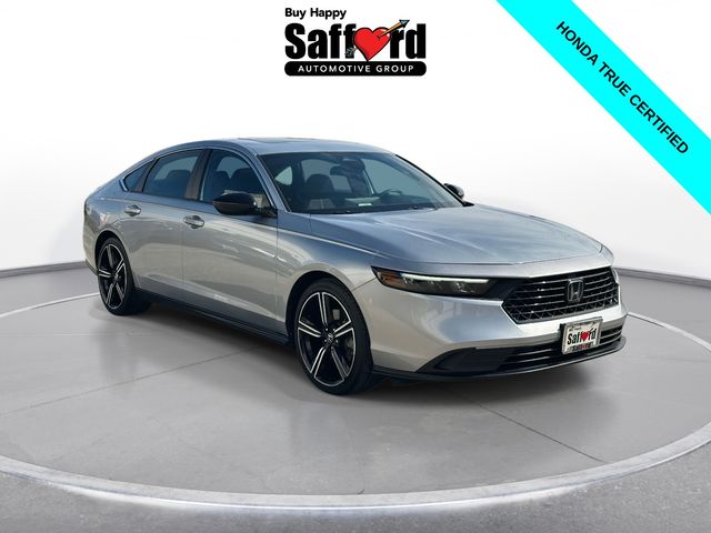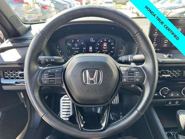 Certified. CARFAX One-Owner. Clean CARFAX. Solar Silver Metallic 2024 Honda Accord Hybrid Sport 4D Sedan FWD eCVT 2.0L 16V DOHC **HONDATRUE CERTIFIED**, **7 YEAR/100,000 MILE HONDATRUE CERTIFIED**, **APPLE CARPLAY/ANDRIOD AUTO**, **POWER SEAT**, **MOONROOF**, **BLUETOOTH**, **BACKUP CAMERA**, **BLIND SPOT INFORMATION**, **COLLISION MITIGATION SYSTEM**, **BALANCE OF FACTORY WARRANTY**, **CLEAN CARFAX**, Appearance Package, Moonroof, Sport Package, Sunroof/Moonroof, 2.0L 16V DOHC, Adaptive Cruise Control: Adaptive Cruise Control (ACC) with Low-Speed Follow, Alloy wheels, Apple CarPlay/Android Auto, Blind Spot Information (BSI) System warning, Brake assist, Electronic Stability Control, Exterior Parking Camera Rear, Lane departure: Lane Keeping Assist System (LKAS) active, Power driver seat, Power moonroof, Wheels: 19" x 8.5J Berlina Black.