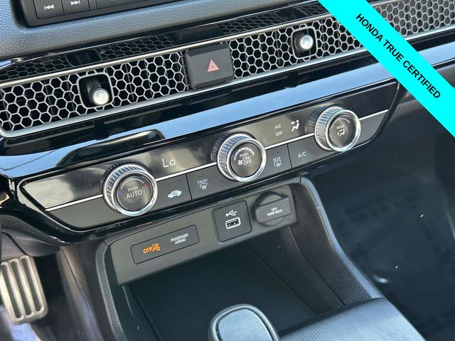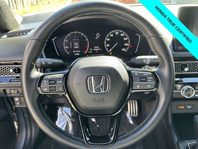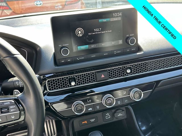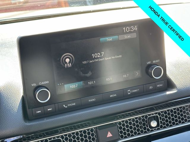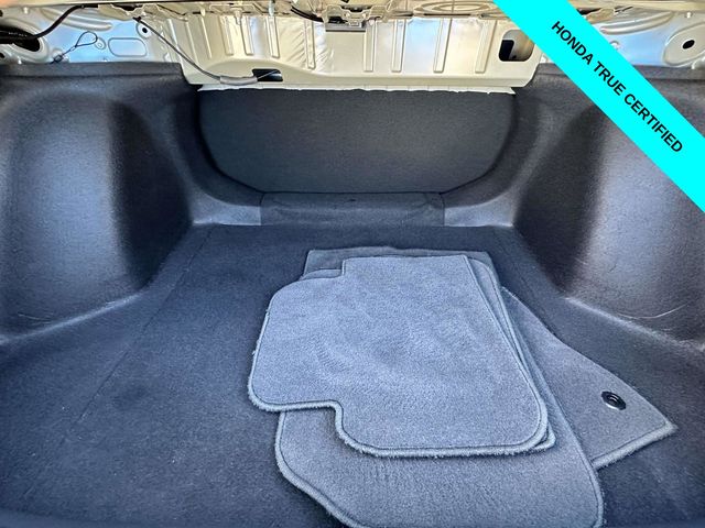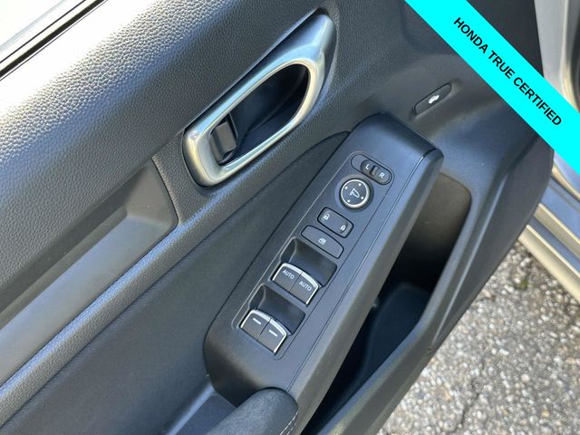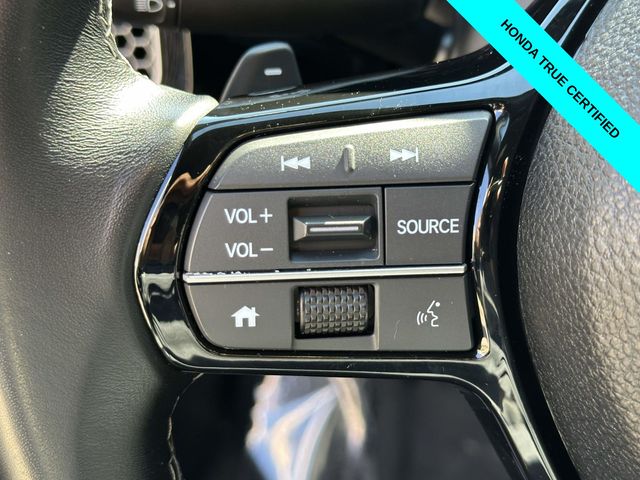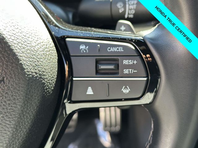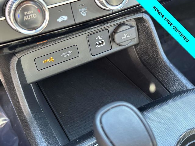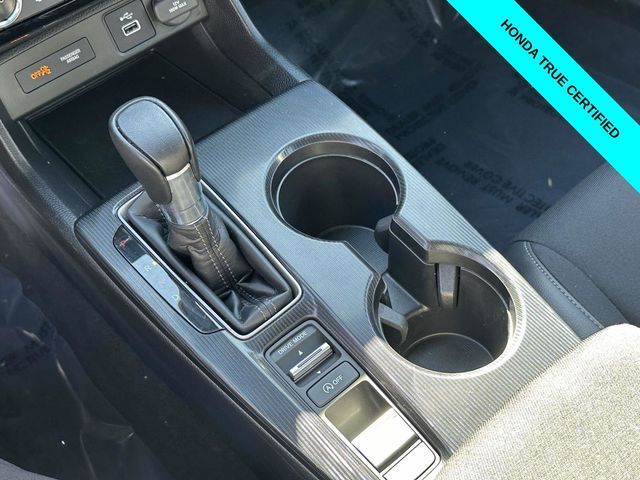 HondaTrue Certified Certified, Black w/Cloth Seating Surfaces, 4-Wheel Disc Brakes, ABS brakes, Adaptive Cruise Control: Adaptive Cruise Control (ACC) with Low-Speed Follow, Alloy wheels, Apple CarPlay/Android Auto, Auto High-beam Headlights, Brake assist, Cloth/Leatherette Seating Surfaces, Delay-off headlights, Electronic Stability Control, Exterior Parking Camera Rear, Four wheel independent suspension, Fully automatic headlights, Panic alarm, Security system, Speed control, Speed-sensing steering, Traction control, Wheels: 18" Gloss Black Alloy, 8 Speakers, Air Conditioning, AM/FM radio, Automatic temperature control, Bumpers: body-color, Driver door bin, Driver vanity mirror, Dual front impact airbags, Dual front side impact airbags, Emergency communication system: HondaLink, Front anti-roll bar, Front Bucket Seats, Front Center Armrest, Front reading lights, Illuminated entry, Knee airbag, Leather Shift Knob, Leather steering wheel, Low tire pressure warning, Occupant sensing airbag, Outside temperature display, Overhead airbag, Passenger door bin, Passenger vanity mirror, Power door mirrors, Power steering, Power windows, Radio data system, Radio: 180-Watt Audio System, Rear anti-roll bar, Rear side impact airbag, Rear window defroster, Remote keyless entry, Steering wheel mounted audio controls, Tachometer, Telescoping steering wheel, Tilt steering wheel, and Trip computer.