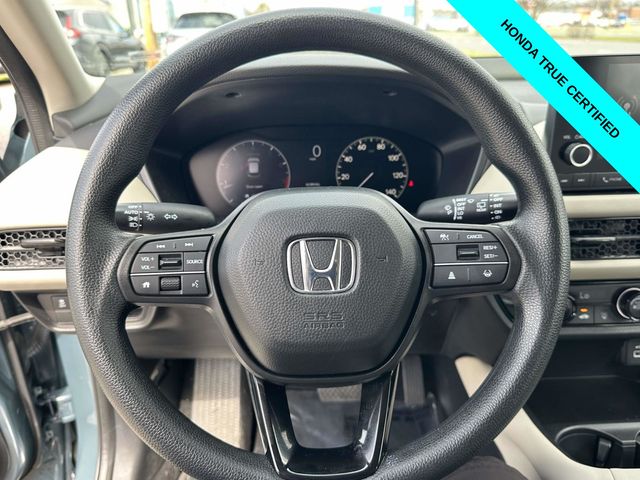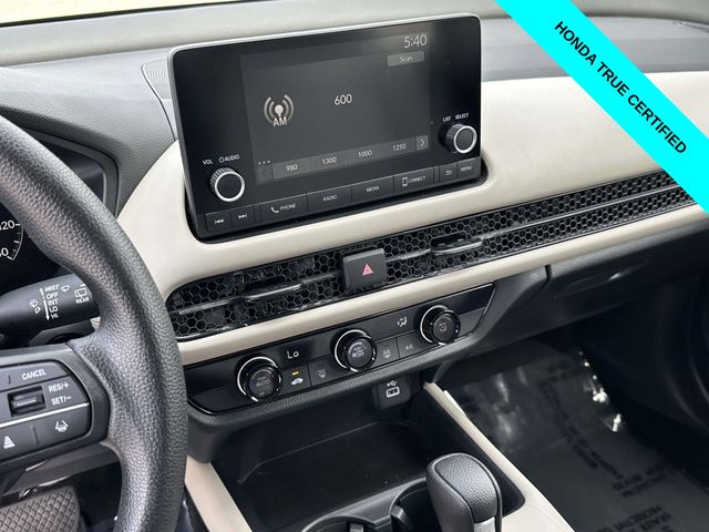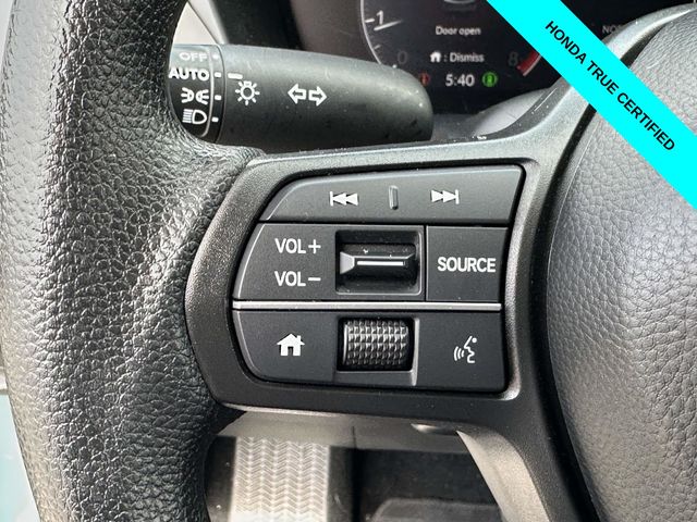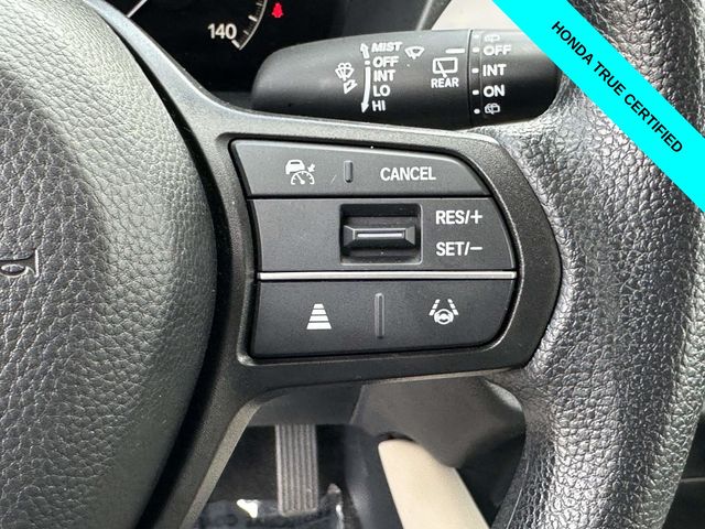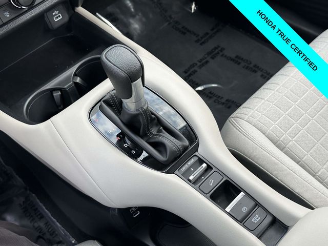 HondaTrue Certified Certified, Adaptive Cruise Control: Adaptive Cruise Control (ACC) with Low-Speed Follow, Alloy wheels, Apple CarPlay/Android Auto, Brake assist, Electronic Stability Control, Exterior Parking Camera Rear, Wheels: 17" Silver Painted Alloy, 4 Speakers, 4-Wheel Disc Brakes, 5.436 Axle Ratio, ABS brakes, Air Conditioning, AM/FM radio, Auto High-beam Headlights, Automatic temperature control, Bumpers: body-color, Cloth Seat Trim, Delay-off headlights, Driver door bin, Driver vanity mirror, Dual front impact airbags, Dual front side impact airbags, Emergency communication system: HondaLink, Four wheel independent suspension, Front anti-roll bar, Front Bucket Seats, Front Center Armrest, Front reading lights, Fully automatic headlights, Illuminated entry, Knee airbag, Low tire pressure warning, Occupant sensing airbag, Outside temperature display, Overhead airbag, Panic alarm, Passenger door bin, Passenger vanity mirror, Power door mirrors, Power steering, Power windows, Radio data system, Radio: 180-Watt Audio System w/4 Speakers, Rear anti-roll bar, Rear reading lights, Rear side impact airbag, Rear window defroster, Rear window wiper, Remote keyless entry, Security system, Speed control, Speed-sensing steering, Split folding rear seat, Spoiler, Steering wheel mounted audio controls, Tachometer, Telescoping steering wheel, Tilt steering wheel, Traction control, Trip computer, and Variably intermittent wipers. Recent Arrival! Odometer is 13415 miles below market average! 25/30 City/Highway MPG