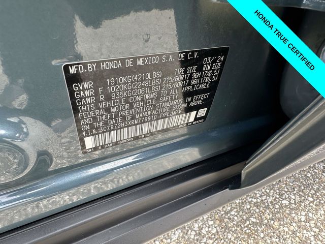 Certified. CARFAX One-Owner. Clean CARFAX. Nordic Forest Pearl 2024 Honda HR-V LX 4D Sport Utility AWD AWD CVT 2.0L I4 DOHC 16V i-VTEC **HONDATRUE CERTIFIED**, **7 YEAR/100,000 MILE HONDATRUE CERTIFIED**, **APPLE CARPLAY/ANDRIOD AUTO**, **AWD**, **BLUETOOTH**, **BACKUP CAMERA**, **COLLISION MITIGATION SYSTEM**, **BALANCE OF FACTORY WARRANTY**, **CLEAN CARFAX**, Appearance Package, Adaptive Cruise Control: Adaptive Cruise Control (ACC) with Low-Speed Follow, Alloy wheels, Apple CarPlay/Android Auto, Brake assist, Electronic Stability Control, Exterior Parking Camera Rear, Wheels: 17" Silver Painted Alloy.